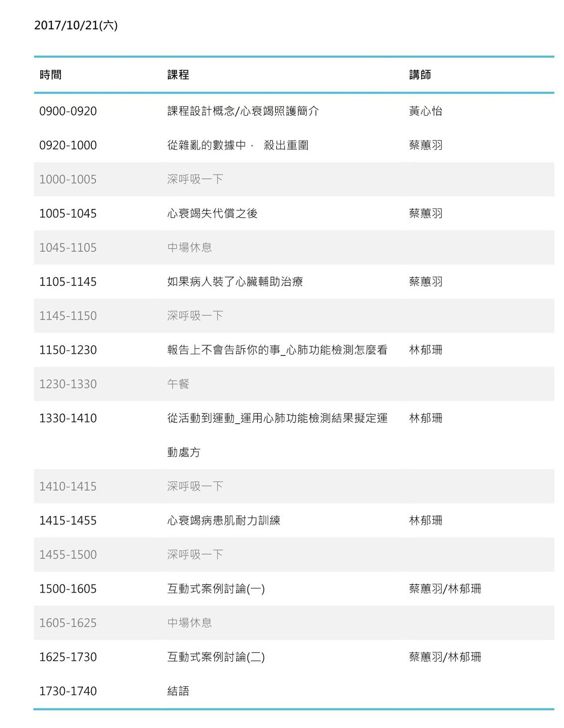 2017心衰竭-心肺復健菁英工作坊